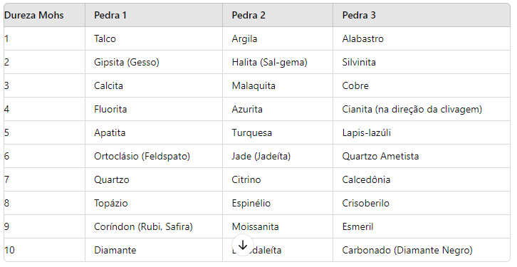 🔷 2. Dureza MOHS (Pedras Preciosas), a régua da dureza.